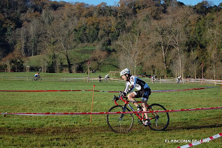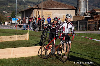 JAVI DURANTE LA PENULTIMA VUELTA VA TIRANDO A UN RITMO ALEGRE, LE PASO EN UNA ZONA REVIRADA EN VISTA DE QUE TENGO QUE ENTRAR PRIMERO EN LO TÉCNICO SI QUIERO DEJARLO DE RUEDA; ÉL LO SABÍA E INTENTA COGER LA CABEZA LLEGANDO A PONERSE PARALELO A MÍ; YO LE GRITO ¡¡JAVI!! AQUÍ NO, AQUÍ NO!! PERO LOS NERVIOS, EL ANSIA, O SABE DIOS QUE, NO CEDE EN EL INTENTO Y A PESAR DE QUE NINGUNO DE LOS DOS COGE LA TRAZADA BUENA A MÍ ME TOCA EL MARGEN DERECHO, EL PEOR PASO Y UNA ENORME PIEDRA, UN LLANTAZO, UNA CAIDA ACABAN CON UNA PARTE DE MIS POSIBILIDADES; NO ME RINDO Y ME SUBO A LA BICI, LE LLEVO MUY CERCA AÚN PERO ENSEGUIDA NOTO AL SALIR DEL BARRO QUE MI RUEDA DELANTERA IBA PINCHADA; CONTINUO CON BICI AL HOMBRO O SUBIDO EN ELLA DONDE EL TUBULAR LO PERMITIA Y LLEGO AL BOX, BUSCO LA BICI DE REPUESTO DETRAS DE UN DESMADRE DE GENTE QUE MERODEABA POR EL CONTROL!! NO ENCUENTRO APENAS LA SALIDA, RETROCEDO, ME CABREO Y AQUÍ DEFINITIVAMENTE SE ME ESCAPA LA VICTORÍA.